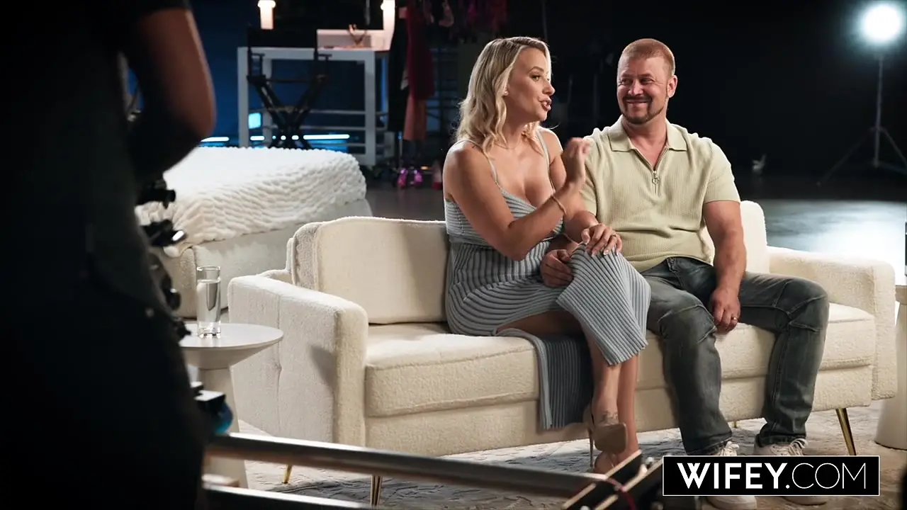 A sexy brunette wife shares intimate kisses with her blonde lover. Watch as this hotwife talks openly about her marital desires in an interview. This steamy compilation showcases their couple's chemistry and passion in and out of the bedroom.