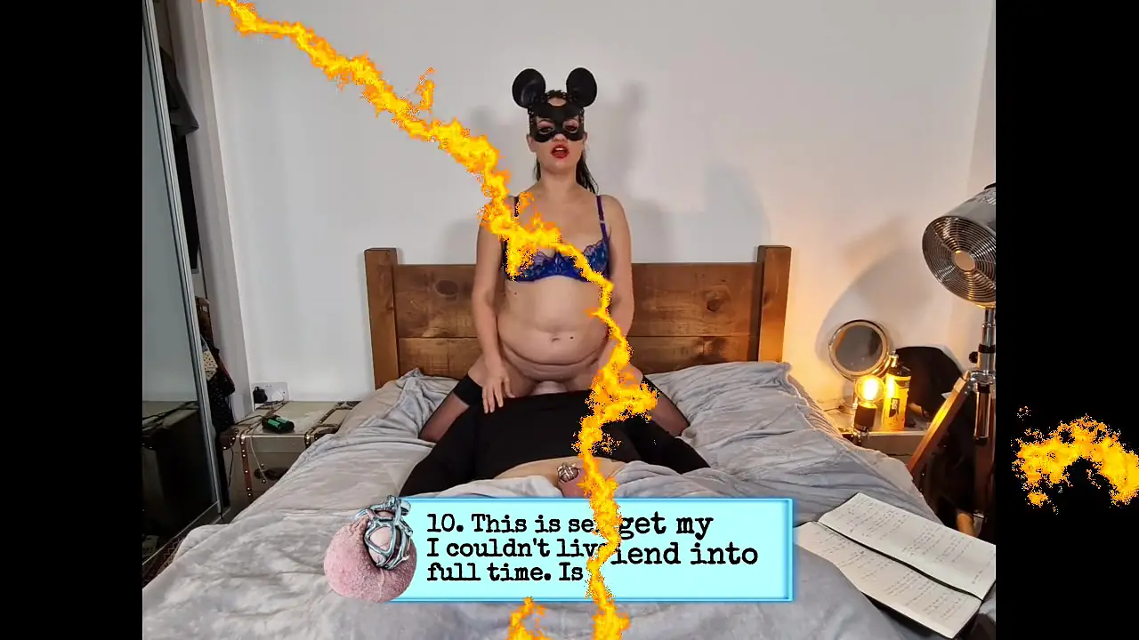 A real life 24/7 femdom relationship is explained in this Q&A session. Watch as a milf mistress facesits her pawg slave's fat ass, controlling every move. He's her sex slave and she enjoys teaching him the ways of bondage and submission. In between the questions, they enjoy some hot face-farting action.