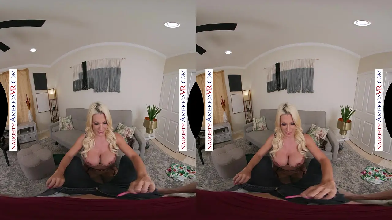 Sexy MILF Brittany Andrews wants a new fuck buddy. She grinds on reverse cowgirl on the couch, showing off her giant fake tits and blue eyes. Cum on her tit at the end while she moans in pleasure.